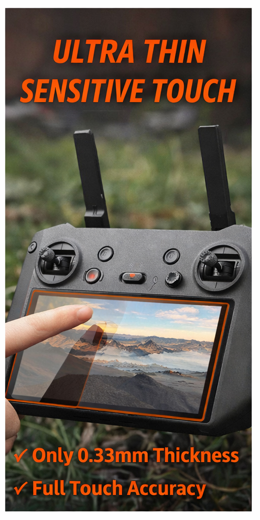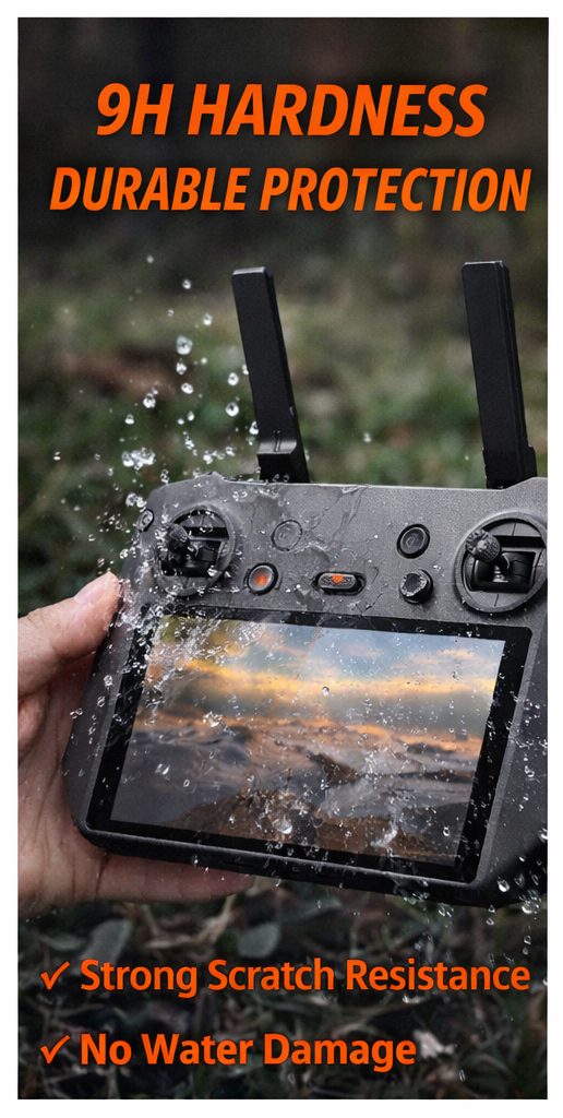 When operating a drone, clarity is crucial. High-transparency tempered glass is used in this screen protector to maintain the display’s original brightness, color accuracy, and sharpness. Pilots can concentrate on framing, navigation, and flight data without being distracted since the screen is simple to read even in bright outside light.