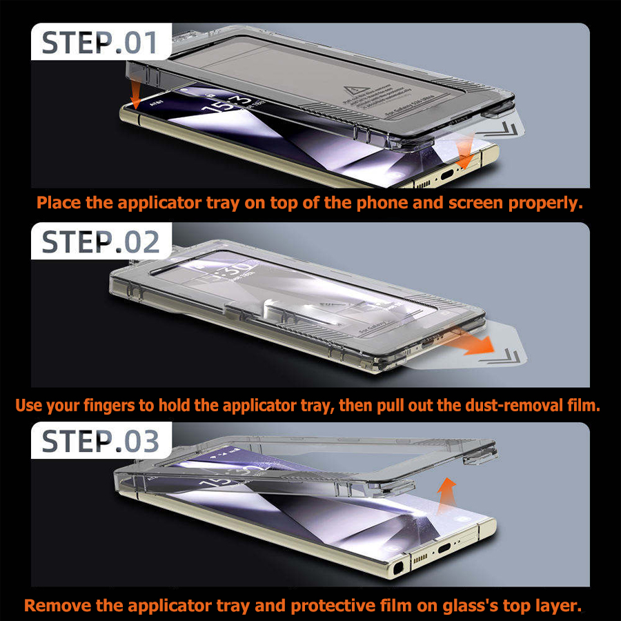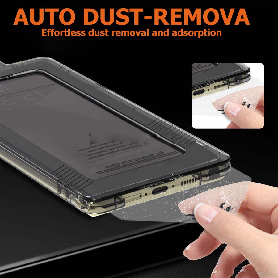 The accompanying applicator frame is intended for simple, precise installation. It automatically aligns the tempered glass with your device’s screen, minimizing human error and ensuring a flawless fit. This system can help you avoid: